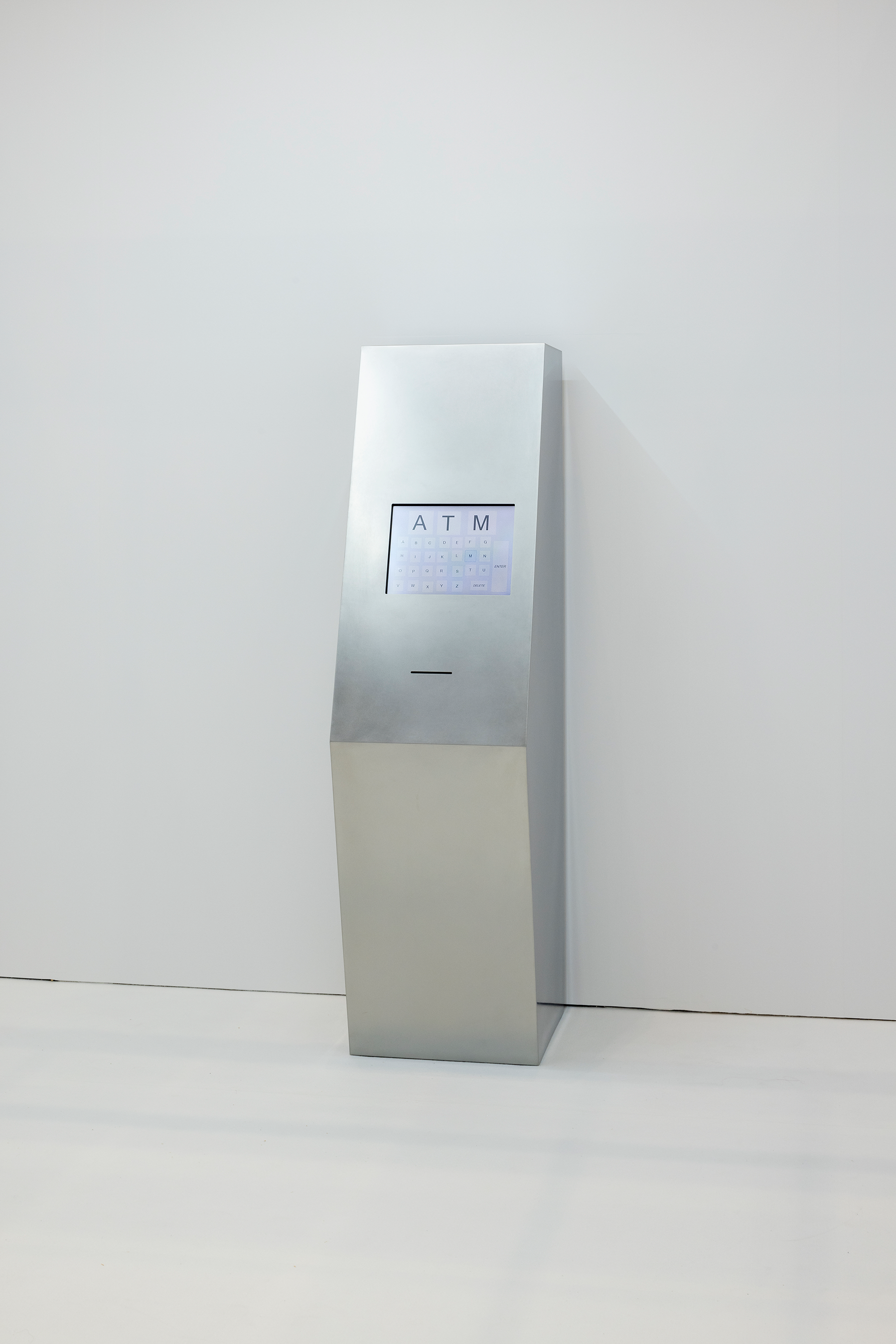 作品タイトルは「Automated Teller Machine(現金自動預払機)」に由来し、ここで “Teller” は「話者」と読み替えられています。任意の3桁のアルファベットを入力すると、田村がこれまで作品制作にあたり書き綴ってきた膨大なテキストを参照しながら、生成AIが田村に代わり3つのセンテンスからなるショートストーリーを生成し、レシートを排出します。そのストーリーが、受け取り方によっては占い師(Fortune-Teller)からの助言のように響く事もあるようです。